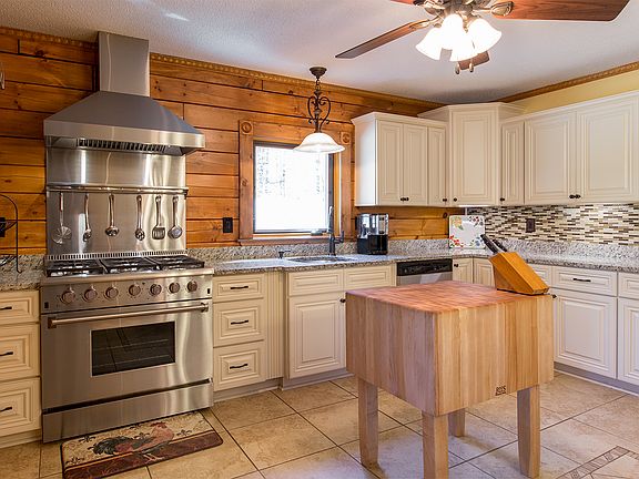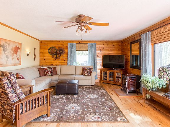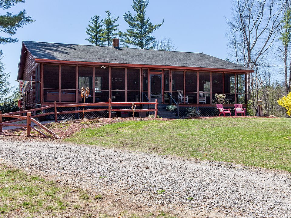 Their loss is your gain! Buyers financing fell through. Impeccably maintained and updated 3 bedroom ranch style log cabin . No worries about too much wood as much of the inside has sheet rocked walls and lots of character!! Enter through the charming front porch with plenty of space for entertaining . Eat in chefs kitchen with granite, updated white cabinetry, gas stove with hood, tile flooring and spacious pantry. Large living room with pellet stove and hickory flooring. Updated baths. First floor master with walk in closet. Spacious finished lower level boasting tile flooring and bar, third bedroom, half bath, laundry and additional finished room, perfect for in home office or study. Oversized rear deck overlooking level, sunny 1.9 acre lot with shed and workshop. So much to offer within minutes of Route 125, highways and elementary school.