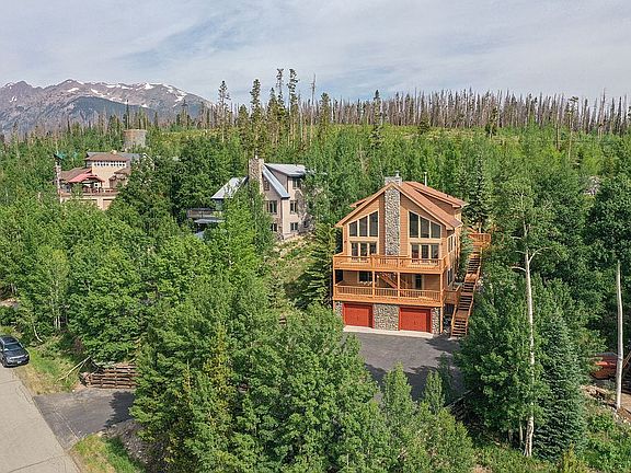 !! ROOF IS BEING REPLACED !! LIMITLESS VIEWS to the South: Lake Dillon, Keystone, Breckinridge... to the North property adjoins White River Natl Forest with its endless marked, maintained hiking/ski trails accessible from the back deck. Owner-built home offers many extras/desirables: Sauna, 3 wet bars, breakfast nook, built-in humidifier!! plus dual (2) gas furnace heat, 2 gas fireplaces, dual (2) water heaters, outdoor covered hot tub (with the views!), large outdoor deck spaces, covered decks, paved drive to oversized gas-heated garage, "owner's closet" off garage level, heat-taped roof, improved french drains (Spring thaws/rains), passive solar heat from the southern exposure (Winter heating assist), pine ceiling in great room, jacuzzi in master bath, wired security system, built-ins lower level. This property has never been rented or leased.