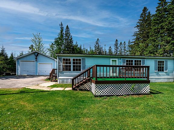 Welcome to this charming 3-bedroom, 2-bath double-wide mobile home, nestled on a serene 7-acre parcel of land. Situated in a quiet location, this property offers a peaceful retreat with plenty of space to explore and enjoy nature. The primary bedroom of this home boasts a full bath and a convenient walk-in closet, providing a private and comfortable space. The first floor also features a convenient laundry room, making chores a breeze. As you step into the expansive eat-in kitchen, you'll find ample space for preparing meals and hosting gatherings. The kitchen opens up to a spacious living room, creating a warm and inviting atmosphere for relaxation and entertainment. In addition to the primary bedroom, this home offers two more well-appointed bedrooms and another full bath, ensuring ample space for family members or guests. Outside, you'll discover a beautiful yard that invites you to enjoy the great outdoors. The property also features a large two-car garage, providing ample parking and storage space for vehicles and equipment. Additionally, there is an extra-large storage shed, offering even more room for organizing your belongings. Nature enthusiasts will appreciate the convenience of ATV and snowmobile trail access, allowing for endless adventures in the surrounding area. Don't miss the opportunity to make this tranquil property your own. Experience the joy of country living combined with the comforts of home.
