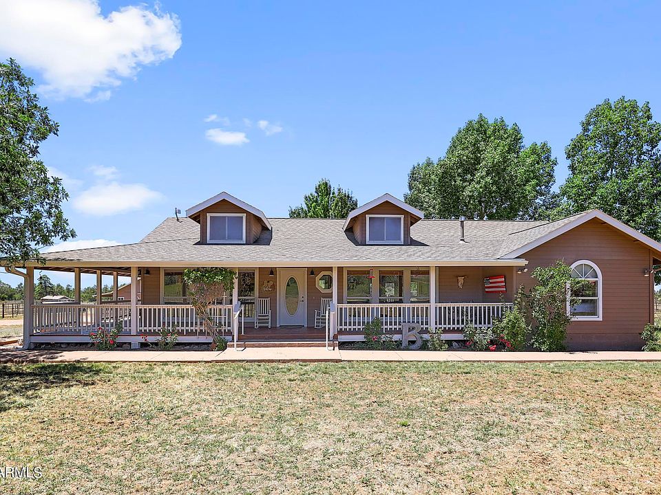 Come and see this beautiful, private ranch home that sits on 10 acres with large barn, stock tank and backing the national forest! This custom home includes many upgrades including large decks both front & back, Gas cooking, gas fireplace, well insulated, ceiling light/fans in all rooms, double pane windows, handicap accessible with wide doors and ramps, inside laundry, skylights, large walk-in closets, laminate wood floors, ceramic tile in the kitchen and bathrooms, carpet in the bedrooms. The property is completely fenced with an electric entrance gate & features an 8-stall block barn with feed & tack room, loft, hot walker, chicken coop, roping area and a garden. Many evenings and mornings you will enjoy the sight of elk grazing through the pastures.