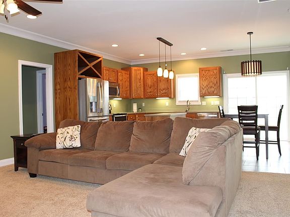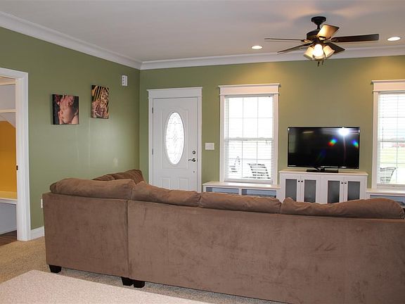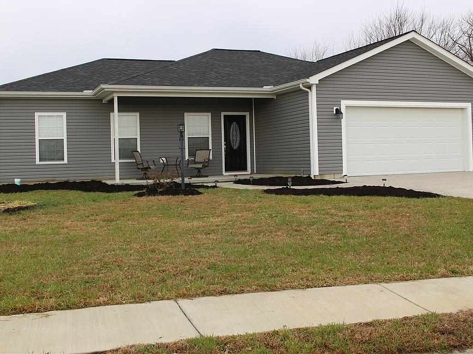Wonderful Upgrades make this home a must see! Covered front porch opens to a spacious Great Room with 9 ceilings, crown and built ins. The open kitchen features a center island with pendant lighting, pretty oak cabinetry, wine rack and solid surface countertops. The Mud Room has tile flooring and open pantry with wood shelving. Split Bedroom design features a Master Suite with ceiling fan, walk in closet and full bath with double sink vanity, tiled floor and tile shower. There are two more bedrooms with ceiling fans and a second full bath enhanced with stacked crown. Whirlpool Appliances include R/O, Refrigerator, Dishwasher, Microwave, disposal, blinds and 4 ceiling fans. There is a 11 x 20 Patio which provides a large openair living space. 2.5 car garage complete with keyless entry, utility sink, wood shelving and a Safe Area with rebar enforced concrete blocks. Low taxes and suburban subdivision make this the ideal USDA purchase.