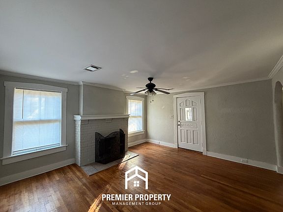 Discover cozy living in this beautiful 2-bedroom, 1-bathroom home offering 1,169 square feet of comfortable space. Step inside to a bright, open living room featuring a rustic brick fireplace and plenty of natural light. The spacious kitchen includes an island, ample countertop and cabinet space, and an informal dining area-perfect for everyday meals.