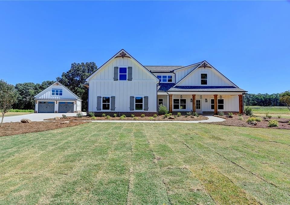 **BACK ON MARKET - NO FAULT OF SELLER** Lot 6 ~ The Ashley - Modern Farmhouse New Construction in Good Hope, GA nestled on 5 Acres of 200 Year Old previous Cotton Fields; Master on Main Features 12 Ft Ceilings, Wooden Beams, Sitting Area with Shiplap detailing and beaded chandelier; A Custom Barn Door Opens to the Master Bath with Framed Mirrors, His & Hers Vanities, Spa-Like Shower, Free Standing Tub, & Walk In Closet with Custom Built-Ins; Convenient split bedroom floor plan with 1 Large Bonus Room Up + 1 Bedroom Up & 1 Full Bath Up + Flex Room! Wide Plank Engineered Flooring Throughout ENTIRE Home! No Carpet!! Open Gourmet Kitchen Features Large, Beautiful Quartz Island with Farmhouse Apron Sink + Under Counter Storage, Black Plumbing Fixtures, a Gorgeous Tile Backsplash, Stainless Appliances, Pot Filler over Gas Cooktop, Two-Toned Cabinets, wall oven w/ built in microwave, and Farmhouse Wood Vent Hood; Mudroom Nook with Hooks, Storage, & Bench; Laundry Room with Decorative floor tile and sink; Open Family Room includes view to Formal Dining Area with Wooden Beams, Custom Built-Ins & Shelving, Brick Fireplace and a Showstopper 76 inch Pre-Civil War Hickory Wood Mantel from a Northern Ohio Amish Barn via early 1800's! Detached 24 x 35 Garage has extra tall 8 ft header to support larger vehicles, pull down attic storage, insulated doors & Covered Rear Porch!! 4 - Car Garage Total! Exterior Soffit Lights, Rear Patio ready for TV + your Gas Grill or Outdoor Kitchen; Extensive Landscaping & 10- Zone Irrigation System. Long Private Driveway with Fence at entry; Builder cleared area at Oak Grove Treeline - Perfect for PoleBarn or Outdoor Area; Additional Concrete & Driveway Pad allows for RV or Boat Storage. No HOA. Lot 6. Pool Ready.