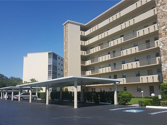 55+ Bldg. Partially furnished 2BR/2BA 3rd floor condo. Glass enclosed lanai is also screened and floor to ceiling sliding glass doors can be opened to enjoy the beautiful Florida weather. This Glass Enclosed Lanai has a fabulous view of the golf course (13th green). Storage and Laundry Facilities on same floor. "Skyroom" is an activity room on the top floor for the residents use. (meetings, play cards/games, parties, etc.). Carport #13 and Guest Parking. Walk to Rec. Hall #2 which has a swimming pool, fitness, shuffleboard, library, dance floor, meeting room, kitchen, etc. Relax by the pool and sun bathe or chat with your neighbors. 18 Hole Semi-Private Golf Course w/Pro Shop and Golf Pro (golf membership available but not mandatory - can also pay greens fees as you play). Tennis Courts. Centrally located to banks, shopping, dining, movies, bowling, local entertainments, G.T. Bray Park, medical and churches. No trucks/RVs/Motorcycles. No Pets.