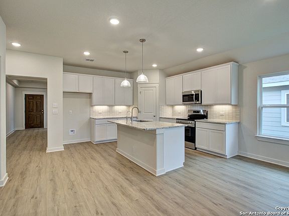**Upgraded Masonry, Enlarged Owner's Closet, Extended Covered Patio** Come out to Cloud Country to see this wonderful Kimbell floorplan by Brightland Homes. This plan is 1989 SQFT with 4 bedrooms, 2 full bathrooms, and a flex room. The spacious owner's suite is at the rear of the home. The bathroom has a tiled recessed walk-in shower, a double Marlena vanity with a 36" mirror, a private toilet, a linen closet and an enlarged walk-in closet. The open kitchen has a center island, 42" cabinets with crown moulding, upgraded stainless steel appliances with an electric range, an externally circulated vent fan, an Elite Water drinking system, granite counter tops, and a walk-in pantry. Off the entry foyer is a flex room. Bedroom 4 has a walk-in closet. The second bathroom has upgraded tile surround ILO a three-piece panel. The home's exterior has upgraded masonry, an extended covered back patio, a 6' privacy fence with a gate, a professionally landscaped yard and a full yard sprinkler system with a water conserving rain sensor. **Photos shown may not represent the listed house.**