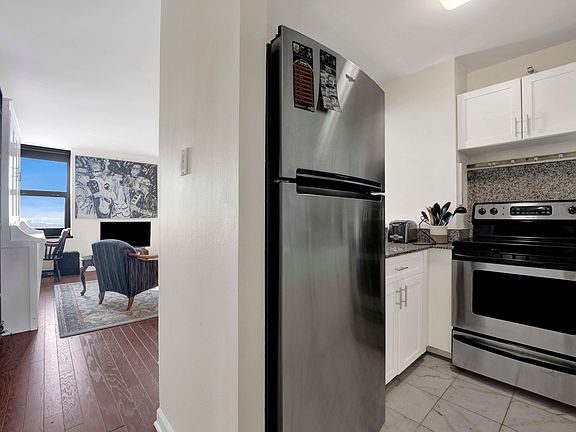 Welcome home to your new address in the coveted New York Private Residences on Lake Drive! This lovingly maintained studio offers a smart, space-saving design and a private balcony showcasing sweeping west facing views, including the iconic Wrigley Field. Enter through the foyer hallway, featuring plenty of space for your wall art and a closet for coats and seasonal essentials. The living comes with a custom Murphy bed that seamlessly shifts from a cozy bedroom to an open, welcoming lounge, maximizing both comfort and functionality. Off the living room, a pass-through window leads to the bright kitchen with stainless steel appliances, granite counters, and fresh white cabinets. Located just off the living room, the bathroom combines style and practicality, featuring a glass-enclosed tub and shower, sleek gray tile, ample vanity space, and modern cabinetry. Throughout the home, expansive windows bring in abundant natural light, while generous storage near the foyer and bathroom enhances the comfort and efficiency of the floor plan. Beyond your front door, enjoy incredible amenities that support an active and social lifestyle, including a spectacular rooftop deck with grills, firepit, sunbathing chairs, and dining areas. The building also offers 24-hour door staff, two party rooms, a fenced dog run, access to a FFC gym with 3 floors of fitness and wellness, bike room, laundry room, receiving room, and on-site management. All of this in an unbeatable Lakeview location near Lake Michigan and its incredible offerings such as tennis courts, softball fields, playgrounds, trails for all kinds of movements, Belmont Harbor, Montrose Beach, Wrigley Field, several grocery stores, CTA's Red Line Addison Station, numerous CTA bus routes, dining, nightlife, cafes, and too many to list. Pet and investor friendly. Pet and investor friendly. HOA includes central air with heat and cooling, water, cable, and internet. Come home and love where you live!