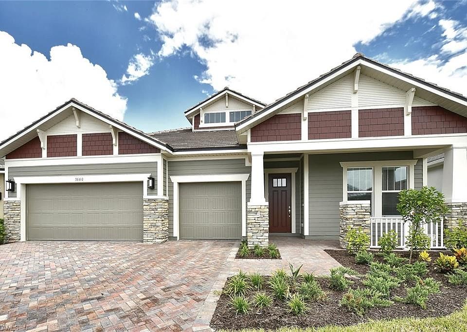 This BRAND NEW construction, a Regatta model with an upgraded Craftsman elevation is an immaculate single family home. Exceptional living begins with this 4 bedroom, plus study, 3 full and 2 half baths, and 3 car garage home and features a large open great room; formal dining room; deluxe Chef's kitchen with granite counters, beautiful backsplash, upgraded 42 inch cabinets, and stainless steel KitchenAid appliances. Additional upgrades include: tray ceilings at the foyer, 5¼ inch baseboards throughout the home, plank tiles in the great room, and upgraded lighting throughout which make this home elegantly light and bright. An owner's suite with a walk-in closet; owner's bath with dual sinks, granite counter tops, walk-in shower; a closed den with French doors and screened lanai. Compass Landing is a private and secluded gated community featuring DEEP LOTS from 50ft. to 60ft. wide and 130ft. to 180ft. long with low association fees! Located in North Naples and minutes to I-75, Mercato, Waterside Shops, Gulf Beaches and zoned with "A" rated Collier County public schools. Residents enjoy a 2,600sf amenity center appointed with resort-style pool, clubhouse, tot lot and fitness center.