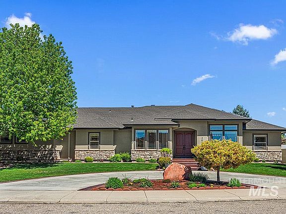Refined living with room to grow on nearly half an acre corner lot in SW Boise! The remarkable lot features a grand half-circle driveway and a side-entry full-sized RV garage/shop—ideal for the at-home hobbyist. Inside, the home lives like a single level with the master suite and main living areas on the main floor, complemented by a spacious lower level. The gourmet kitchen features wood cabinetry, granite countertops, stainless steel appliances, an oversized dining island, and a generous pantry with a prep fridge. Additional spaces include an executive office, formal dining room, and a lower-level bonus room with a full kitchenette. Thoughtful upgrades include built-in indoor and outdoor surround sound, perfect for entertaining. The beautifully maintained backyard offers an expansive covered patio, lush lawn, meticulous landscaping, a play structure, and a large garden area. Great central location minutes from the YMCA, parks, daily errands, and with easy access to both Boise and Meridian!