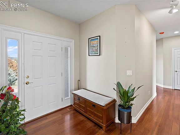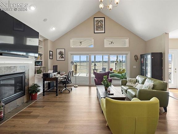 Views like these are what makes Colorado so special! This upscale 5 bedroom, 4 bathroom walk out ranch home features luxury living against the breathtaking backdrop of Pikes Peak and the whole front range. Settled at the end of a serene cul-de-sac, this residence offers easy access to Monument, Denver, and Colorado Springs, while showcasing panoramic mountain views that stretch as far as the eye can see. Revel in the grandeur of Pikes Peak vistas from the master bedroom, great room, sun room, kitchen, and expansive 17 x 12 back deck, perfect for soaking in the natural splendor or entertaining guests against the backdrop of Colorado's iconic peak. The gourmet kitchen, adorned with quartz countertops, top-tier stainless steel appliances, and gleaming hardwood floors, seamlessly flows to the outdoor deck, creating an ideal space for culinary creations and al fresco dining. The main level boasts three bedrooms, including the primary, and a window filled sunroom offering a serene retreat with every comfort at hand. The walkout lower level features a dual-sided gas fireplace, two additional bedrooms, one of which is the junior primary with a private en-suite bathroom and walk in closet, and a versatile bonus spaces that can easily accommodate a fitness studio, home office, or movie theatre. A wet bar adds a touch of extravagance, perfect for hosting gatherings or crafting libations while taking in the mountain views. The three-car garage boasts additional storage shelves and Tesla charger. Located near Lewis Palmer D38 schools with stunning sunsets, this home represents the pinnacle of Colorado living.