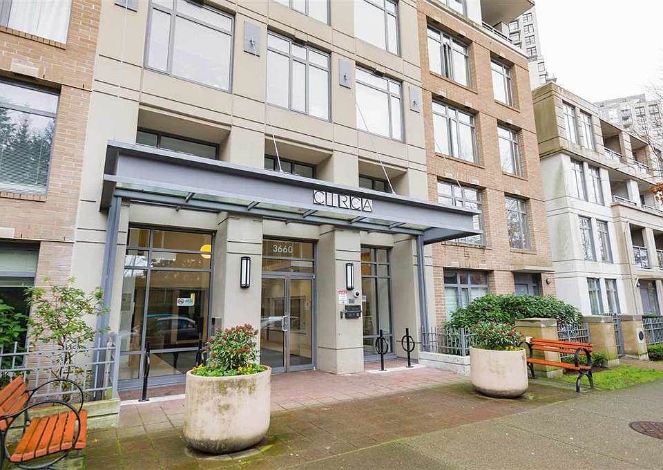 Welcome to The Circa, quality built building by Bosa! Circa offers stylish suites in central location, surrounded by green space. This immaculately-kept east-facing 1 Bed & Den (can be used as a second bedroom!) + 1 Bath suite is perfect for a first time home buyer or for investment! Features include an efficient floor plan, extra large windows for plenty of natural lighting, 2 year-old in-suite laundry and bright den/solarium flooded with sunshine. Brand New stove in kitchen. 1 parking + 1 storage included. Amenities include an exercise room, bike storage, children's playground, garden & secure guest parking. Short walk to Joyce-Collingwood Skytrain Station and #28 bus towards Joyce Station/Phibbs Exchange, shopping, restaurants, parks & walking paths. CALL TODAY FOR YOUR PRIVATE SHOWING!