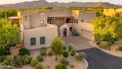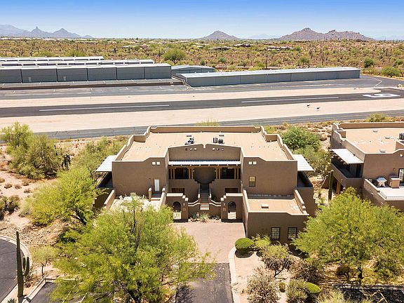 AVIATION LOVERS! This stunning property offers a unique blend of natural beauty and luxurious living within a Gated Community in Carefree, Arizona! Enjoy breathtaking panoramic views of the surrounding mountains and the serene desert landscape. 1970 sq ft of living space, 2 master suites and a flex room! Spacious balconies allow for you to sit outside to enjoy sunset views over Black Mountain. Nestled in the heart of Carefree, you'll have easy access to the town's charming shops, restaurants, and cultural attractions. Within the community you'll have opportunities to socialize with your neighbors at the clubhouse/pool area. There is currently a hangar available at Sky Ranch Airport. Inquire with us for more information! Welcome home!