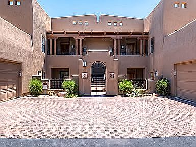 STUNNING VIEWS! This gorgeous, bright, upper level condo in tranquil Carefree is FULLY FURNISHED and move-in ready. Your desert oasis has granite counters, all appliances, and more! With Alder doors/cabinetry, jetted tub and as a bonus, the spacious Junior Suite can be locked from the main home for income potential. Enjoy SPECTACULAR VIEWS from both Suites' spacious balconies, curl up by the cozy kiva fireplace, stroll beautifully landscaped grounds, sunbathe by the resort style pool, and perfect your golf put on the 18-hole putting course. This quiet, gated community is close to shopping, dining, world class golf and many hiking trails. The Master Suite has a Great Room open concept with a large MBR suite. Exterior maintenance, Pool & Club House, Roads, Weekly Trash Pick Up & Landscape are included in the HOA fee. Condo is adjacent to a wash area which provides unobstructed gorgeous views of Black Mountain and the Continental Mountains. Plus as a bonus, there is a large rooftop deck for outdoor dining and entertaining. There is a large shared two car garage with storage space available.