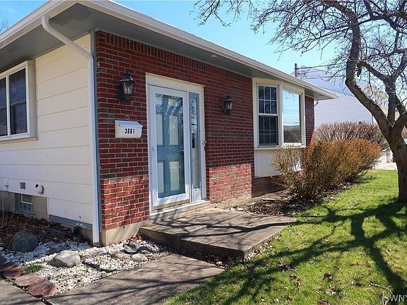 Welcome to this rare find at 3661 Blair Ct. This cozy brick ranch is conveniently located on a quiet street in Hamburg, Frontier School district. Walking distance to Sagamore Playground. This home boasts 3 nice size bedrooms all with natural hardwood floors, 1 full bath, and a living room/dining combo. A beautiful large bay window in the living room fills the room with natural sunlight. The full basement offers plenty of room for storage or expansion if desired. The detached garage has 528 sq ft of storage with a sitting deck attached. Move right in and add your personal touches. This home will not last long. Showings start immediately, all offers are due 4/8/24 @ 2:00pm