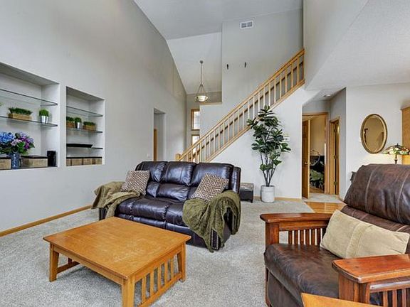 Dramatic high ceiling w/wonderful large widows allow for great natural light. Views to the wetland offering private backyard. Walkout lower level with all 3 levels finished. New SS appliances, granite counters, landscaping. New furnace and A/C, 2 new windows. Wood floors, open floor plan includes 5 bedrooms and main floor master.