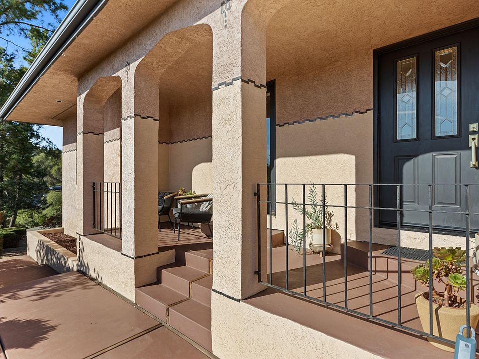 This beautiful custom home in desirable Cameron Park is a must-see! Nestled on a serene corner lot with views, this spacious one-level residence is thoughtfully designed for comfort and style. Step through the formal entry, featuring custom storage, and into the elegant living and dining areas, complete with a fireplace and lovely views. The family room, also with a fireplace, is open to the fabulous kitchen equipped with a large island and rich cherry wood cabinets, perfect for gatherings and entertaining. The primary suite is a true retreat, boasting a cozy sitting area with a fireplace and private deck access. The spacious bathroom includes a soaking tub, a walk-in closet, and exterior access for ultimate convenience. With eight exterior doors and multiple outdoor spaces, this home is undeniably designed for seamless indoor-outdoor living. Additional highlights include newer luxury vinyl flooring throughout, fresh interior paint, and included appliances, making this light-filled home move-in ready for its new owners! Don't miss your chance to experience the charm and tranquility of this exceptional property!