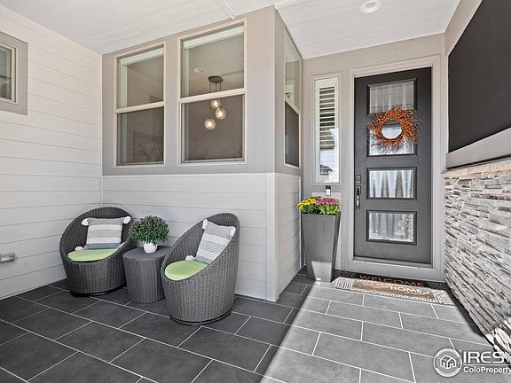 Enjoy mountain views from this stunning ranch home backing to open space! Step into the dramatic open floor plan with soaring ceilings and multiple windows flooding the home with natural light. A front office with a sliding barn door provides a private area for those working from home. The living and dining areas open to the kitchen, providing a wonderful flow for entertaining. The kitchen features a gas range, beverage and wine refrigerators, updated lighting and open shelving for a modern vibe. The huge island with room for six stools is a wonderful work and gathering space. Open the double glass sliding doors off the kitchen to access the gorgeous balcony and lower patios. You'll love the sunrise and sunset views from the entire back of this property with no neighbors behind you! The spacious primary bedroom has an ensuite bathroom with an amazing dual shower and a room-sized walk in closet that connects to the laundry room. The walkout lower level has new carpet and features a beautiful wet bar (with a kegerator) adjoining an enormous room offering many options for entertainment and play. Warm up by the fire pit while enjoying majestic views of the mountains from the paver patio. The back yard is fully fenced and very low maintenance. The Anthem Highlands recreation center is right down the hill from this home with pools, a workout facility, gym, and party rooms. The Association organizes a wide array of classes, programs and social events for the residents. This home is in a great location in a very popular neighborhood with multiple parks and miles of trails, including the Coal Creek Trail which connects to Erie, Lafayette, Louisville and Boulder. With two coveted schools in the neighborhood and close proximity to I-25 and E-470, you won't find a better place to call home!