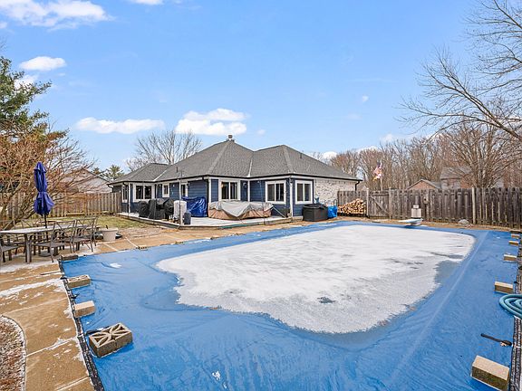 You fall in love with this beautiful custom built ranch with a beautiful in-ground pool, a large yard and no required HOA. Lets begin with the fact that the home is COMPLETELY updated! New flooring, cabinetry, counter tops, cabinetry...The kitchen is stunning with a gas oven/range, hood, wall oven/micro combo, quartz tops, a large island, new cabinets and even a farm sink. The primary bedroom is oversized with a nice sitting area, a walk in closet and a beautiful view. Hold on when you see the bathroom with a step-in tiled shower dual sinks and even a fog free mirror. Bedrooms two and three are a good size and one has a huge walk in closet. The Great Room has high ceilings and a wood burning fireplace. The finishing touch is a nice little office off the back with a view of the pool. Details on pool updates provided upon request. The garage is extra deep and over 500 sf. A separate laundry room and powder bath. The yard is large with a privacy fence surrounding the pool area and a separate fenced in area for pets. I can't say enough about how beautiful this home is. Come take a look.