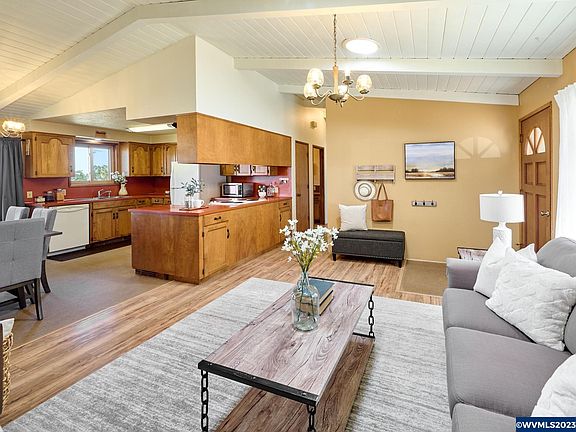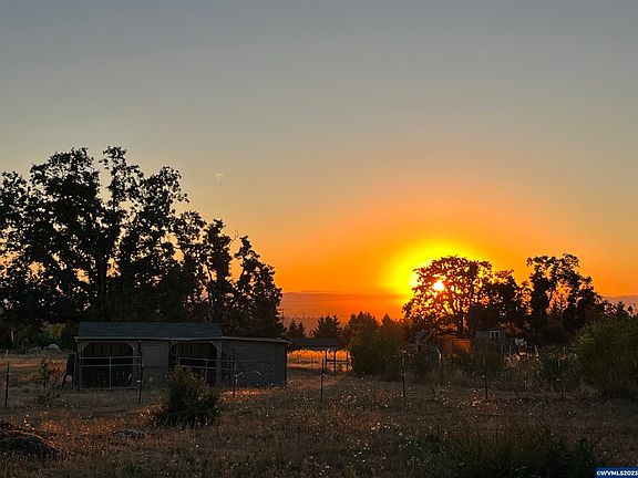Sunset Views. Live your country dreams on 1.89 acres. 4 miles to downtown Silverton and 9 miles to Silver Falls State Park. Offering 1,222 sq ft of living space plus bonus finished garage space. 26x31 Metal garage with 2 10 ft roll up doors, 12x16 storage shed and 20x10 small horse barn. More than one acre of fenced pasture. New roof, 97% energy eff furnace & AC. Newer siding and paint. Seasonal low flow well is supplemented by 1,500 storage tanks a couple month of the year. Buyer to do own due dilligence.
