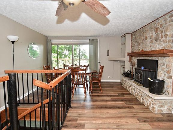 Welcome to this beautiful home on 4 acres with Pond views; Dock access included! This unique 3 bd, 3 FULL bath offers the potential to be a 5 bedroom. Master bedroom and dining/living room on the main level have access to the deck viewing the pond. Walk into the master bath to an Oasis. The master bath includes a nicely finished stand up shower with a separate soaker tub to wind down and relax. The walk out basement is fully finished and allows you to walk out to the pond for a nice day to swim or fish. Newly put in Egress windows located in the basement. 2 WOOD burning fireplaces located on both levels. While two of the four acres are fenced in there is also a newly installed barn, that could be used for animals, storage and more!