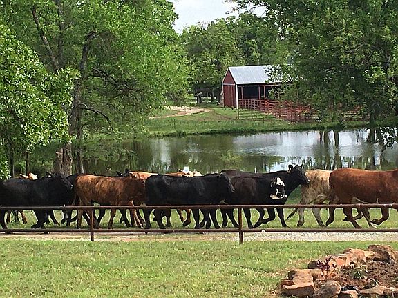 Cross Creek Ranch South 410 acres Ranch Land in Okfuskee Co Oklahoma 2 Story 4500 sq ft Custom Home w detached garage overlooking pond New Solar w/ Off Grid capabilities New Siding New Roof 3 large bd/2.5 bath Large Kitchen with Large Center Island and Quartz countertops Dining Room with Fireplace Utility Room with own entrance Large Living Room with Fireplace Office with privacy doors and built ins Large Master Suite with fireplace, Bathroom and 2 walk- in closets Upstairs Living Room 2 Large Storage Rooms upstairs Saltillo Tile, Wood and Carpet throughout Wrap Around Porch Pipe Yard Fence Central Heat/AC Mini Splits This Ranch is set up and working with 3 wells, perimeter and plenty of cross fences with fresh water available. Currently stocked at 150 hd Cows 7 Bulls 66 Yearlins Typically Produces 300-400 Bales Grass Hay?size 4x6 at 1100-1400 lbs Grass Type Fescue, Bermuda, Weeping Love, Big/Little Bluestem, Korean Lespedeza, Harry Vetch, Arrowleaf Clover, Rye Grass, Crab Grass 11 Miles Fence 1 Spring Fed pond 9 Ponds Massive Pecan Trees Hickory Trees Massive Oak Trees very few cedar Several Wet Weather Creeks that provide water a lot of the time Extensive Corral System with covered working facility w/ Flying W Hydraulic Chute on Headquarters Barn with 2 Stalls and Covered Runs, pens and sorting alley Machine Shed w/enclosed Shop 2 Overhead Feed Bins 24 ton13 ton 4 Fuel Storage Tanks 1000gal300gal 2000gal 500gal 400 Round Bales 366 grass 34 alfalfa This includes the Direct to Consumer BEEF business 24x8 Walk-In Freezer w/Thermo King Whisper 3?.21cu ft freezers 2 Smaller Freezers Generator Pallet Jack Customer List USDA Processing Appointments thru 2022 Active Facebook Page Website w/Online Store This is a Must See Ranch If questions or to schedule a showing please call Equipment and Cattle are also offered to be sold separately.