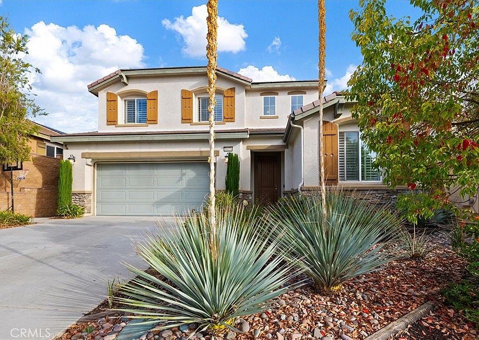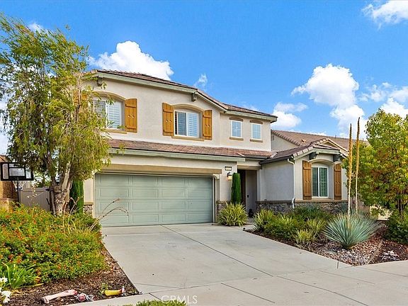 Beautiful Pool & Spa Home in the Heart of Wildomar! Welcome to this stunning two-story, four-bedroom, three-bath home offering 2,389 sq. ft. of comfortable living space. Built in 2015 and ideally located near Inland Valley Hospital, this home combines modern style with everyday functionality. One bedroom and full bathroom are conveniently located downstairs—perfect for guests or multigenerational living. The spacious kitchen is the heart of the home, featuring an extended center island with bar seating, sleek quartz countertops, stainless steel appliances, a double oven, six-burner cooktop, built-in microwave, and an industrial-style stainless steel sink. The open-concept layout flows seamlessly into the family room, where you’ll find built-in shelving, a cozy gas fireplace, and beautiful plantation shutters. Upstairs, the primary suite is a good Size and the Primary Bathroom offers a relaxing retreat with dual sinks, a vanity area, a soaking tub, separate walk-in shower, large walk-in closet, and private water closet. Two additional bedrooms are upstairs with a Full Bathroom with a Tub-in-shower. Also Upstairs is a Private Laundry Room, close to most of the bedrooms and has a large storage closet for linens, towels and supplies. An open loft provides the perfect space for a play area, home office, or media room. Step outside to your private backyard oasis featuring a sparkling pool and spa, Alumawood patio cover with a fan, and plenty of room for entertaining or relaxing year-round. The 2-Car Garage is being used as a gym currently. There is an EV Charger for electric vehicles, a tankless water heater and some of the garage shelving remains. Solar lease to be transferred to the buyer. Conveniently located near shopping, dining, schools, and easy freeway access—this Wildomar gem truly has it all!