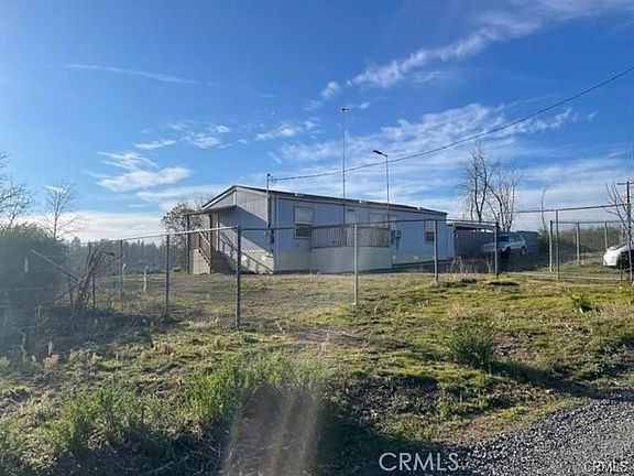 If you want a home with a view in a quiet location, this is it! Have you always wanted a large vegetable garden or land for livestock? This newer mobile home is ready for all of that with almost 7 acres of land, a southern exposure, a new well, and newly painted deck and skirting. The land around the house is fenced in with with 2 gates. The land runs along the road to a dead end gate and ends there but extends straight down to the Concow road, there is a lot of open room to expand and build on! The mobile home is a 2020 model and has 3 beds and 2 baths and is 1152 sf featuring a fully fenced yard with 3 gates. The old home was lost in the 2018 fire and was replaced with this 2020 manufacture home. A metal carport is next to the house along with a small shed. The home is on a corner and faces a spectacular view of the rolling hills and sky. This home sits on top of the hill. Call to see or drive by!