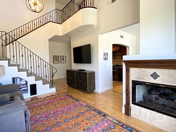 Live the resort lifestyle in this highly desirable Chateau Village townhome! This bright and beautiful home features soaring vaulted ceilings, an open floor plan with a fireplace, hardwood floors throughout and shutters on all windows upstairs. The upgraded kitchen is equipped with stainless steel appliances with a 36" gas over, granite countertops, and travertine flooring. Enjoy the comfort of A/C, two upgraded dual master suites, and a large private back patio perfect for relaxing or entertaining. Additional features include a two-car attached garage with epoxy flooring and full-size washer/dryer. Chateau Village offers exceptional amenities: a community pool, spa, tennis and pickleball court, and gym. Ideally located near top-rated schools, Torrey Pines, Del Mar beaches, and the Del Mar Highlands Town Center for shopping and dining. Don't miss this opportunity to live in one of Carmel Valley's best communities!