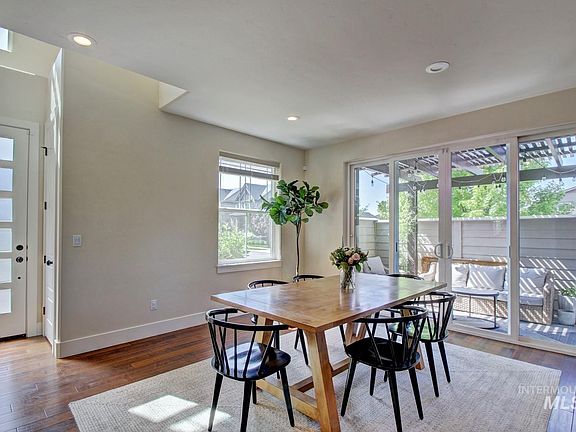 Modern living in a vibrant neighborhood w the greenbelt right out your front door. This beautiful home features all the bells and whistles; large windows throughout for beautiful light, hardwood and tile floors, cozy fireplace, and chef’s kitchen w stainless appliances, granite, inviting island, and big walk-in pantry. The open floor plan and the large sliding glass doors that beckon one to the spacious and private patio flow beautifully into each other and provide wonderful spaces for friends and family to gather. The large master suite features a roomy walk-in closet and luxurious bathroom w a beautiful floor to ceiling tiled shower and even a window seat with cubby storage. A $32K solar system is included and provides very inexpensive electricity and outdoor maintenance is taken care of by the HOA. Take advantage of the bike path out your front door, neighborhood dining across the street, the few steps to the Boise River, or walk to nearby Bown Crossing or the foothills trails. Easy to lock and leave.