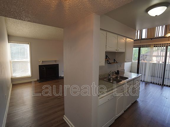 This is an attractive third floor, 2 Br, 1 Bath condo located in the Cherry Creek School District. It has an open layout and lofted ceilings. Lots of light streams in from the huge windows. The main floor is 1,000 sq ft. There is an additional 250 sq ft in the loft area consisting of 3 rooms that are great for a home office, play room, reading room, extra storage, etc. The unit was recently remodeled with new paint and carpet and is in excellent condition.The sink/vanity and toilet/tub are in separate "rooms" in the bathroom so two people can use it and still have some privacy. Amenities include central air, large balcony, washer / dryer hookups, fireplace and off street parking.