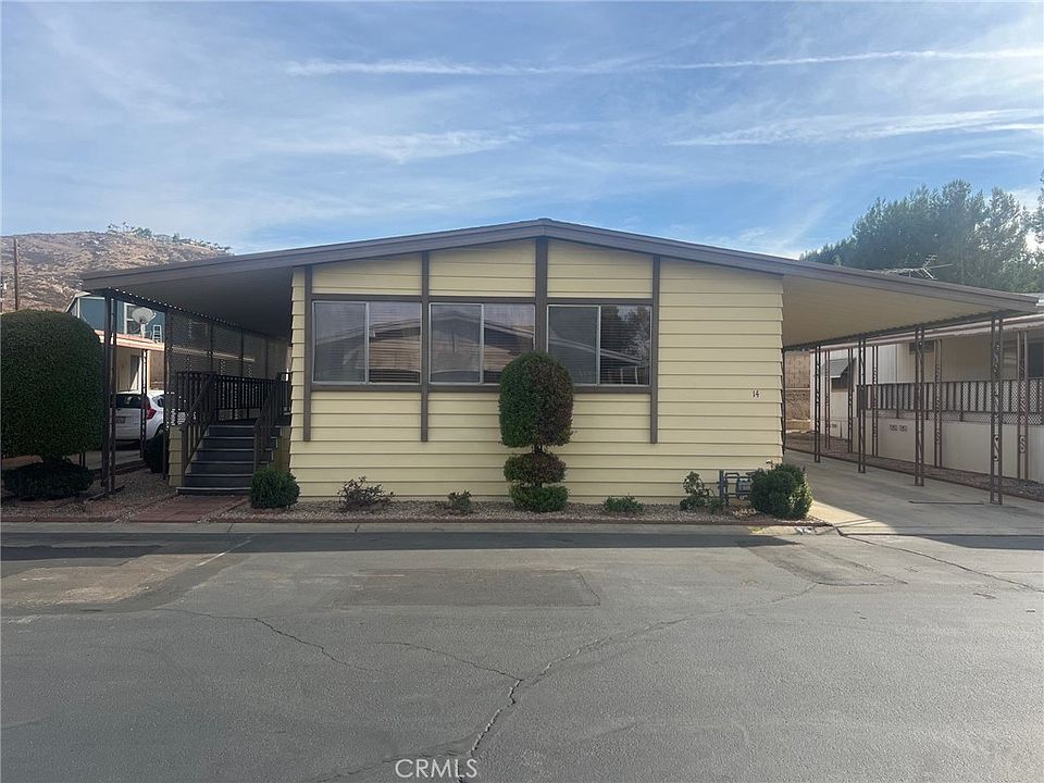 Welcome to Village Riverside! A very family friendly park in the heart of Riverside. Centrally located to freeways, shopping and schools, this beautiful park is a great location for your family! This home is very well taken care and with your finishing touches you can make it your own! This home is a double wide mobile home and it features 2 bedrooms 2 full bathrooms, large living room, separate large laundry room, open kitchen, private porch, large carport, central heating and AC, very close to park entrance. The park has a clubhouse and community pool. Park rules limit to 1 dog not to exceed 20 lbs. Call today to schedule a private showing.