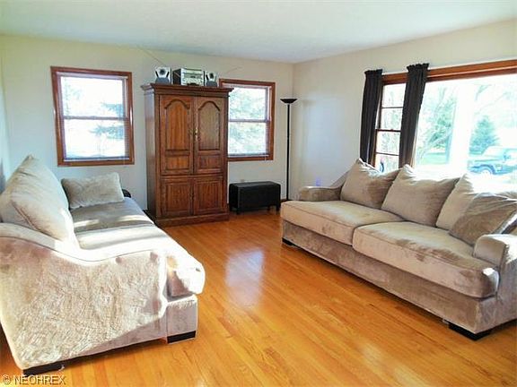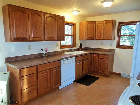Situated back from the street, this classic ranch has been rebuilt to be almost new. Beautiful floorings throughout the home include ceramic tile in the kitchen and hardwood in living room and dining area. Newer cabinetry, appliances, roof, furnace, water heater, and more. The large living room has a grand picture window and additional side windows. The kitchen has a clean bright look and opens through sliding glass doors to the back yard. The owners suite offers deluxe bath with whirlpool tub and separate shower. All new in the last 10-12 years, this home is ready for new owners. Totally open, the basement has great potential. This home also offers a 24 x 30 outbuilding with a 12 x 14 overhead door with opener. A full acre with public water, yet keeping the country feel.