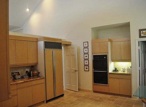 Coveted Home on wide water lot with cabana bath w/outside shower overlooking endless triple fairways and water. Stone floors, granite kitchen counters w/42" custom cabinets, marble baths on private cul-de-sac.Three bedrooms plus a Den w/open Kitchen.