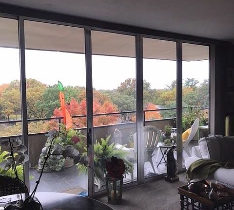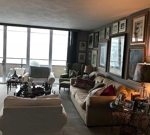 All about the light, bright condo, floor to ceiling windows,& fabulous view-one of best in building. 7th floor, south facing condo- beautiful, updated, large, open, slate tile patio, & extraordinary light fixtures. Highly desired West Grand Towers, secured, established, between Grand & Ingersoll. Shopping, entertainment, restaurants, close to so much, all at great price. Close to the bus stop. Laminate floor and carpet for easy comfort. Granite counters in the kitchen & all appliances (stainless steel) stay. The large BA has extra storage, a separate bath and walk in shower. The master has a large, walk-in closet. Storage at the entry, hall, extra storage in the building. Dues cover so much - heating, cooling, cable, in house mgr(business hrs), free on floor laundry, expansive landscaping, clubhouse, fitness room, lib., lovely guest suite, water, trash, sewage, building maintenance, lawn care, snow removal, building insurance, heated in ground pool. Heated indoor parking - $50/mo.