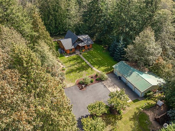 Three parcels and endless opportunities are found in this 13+ acre estate. 7.5 acre woodlands have potential for development of additional homestead, harvest of marketable timber, or to be sold separate. Custom built home has every exquisite detail in mind. Hand-scraped hickory and slate floors, Marinace granite counters, and Samsung bespoke white glass appliances. Living room boasts pine plank ceilings, rustic fir beams, 2-story windows. Energy efficient Rinnai tankless HW, heat pump w/ back-up gas forced air & Pacific woodstove w/ heat blower. Outside, mature greens, abundant perennial blooms, & greenhouse with power & H20. Shop has 3 car parking, 100 amp sub panel, EV rated NEMA 6-50 receptacle, & separate 335 sq ft storage space