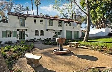 Virtual Tour: http://3663.webs.com .....Designed by celebrated architect Henry L. Jekel in 1925, this spacious 4,096 square foot, 5 bedroom, 3.5 bath estate, was built in the Spanish Mission Colonial style, and is majestically situated on nearly an acre of the sprawling slopes of Little Mount Rubidoux, in the prestigious and historic heights neighborhood nicknamed, "Banker's Row" (just west of the Famous Mission Inn Hotel). Lovingly and carefully underwent a more than $300,000 restoration in 2012, while maintaining it's original old world charm and character. New paint (inside and out). Every door & window was restored or re-fabricated. All door & window hardware was meticulously stripped of many paint layers, and refinished. Completely new landscaping, & landscape irrigation/sprinkler system. All new electrical, and new copper plumbing throughout. Fully networked CAT6 wall jacks in every room, with in wall data & coax. The data center is located in a closet of one of the upstairs bedrooms. Complete double security system, with over 50 zones. Complete re-roof was done, using the recycled (original) 1925 roof tiles. Large front porch, with original solid wood front door opens to a lovely formal entry foyer with original tiger oak floors (found throughout). To the right is the formal dining room that has built-in, glass-front buffet/china cupboard & small closet style butler's pantry. The dining room also has french doors that lead to the circular driveway. The formal living room has wooden beams & great symmetry, adorned with a massive fireplace, flanked by large original windows & two sets of French doors facing the courtyard. The formal living room also features antique wrought iron sconces & chandelier. Adjoining the formal living room, is the den/media room, which has a second (tiled) fireplace & has 4 iron sconces surrounding the room. The entire house has amazing original built-in screens in the window & door frames that roll down. Views of the city lights, Downtown Riverside, The Mission Inn & Mount Rubidoux. The expanded, eat-in kitchen features updated glass-faced cabinetry, new Brazilian soapstone counter tops & hand-made over-sized sink, large island with built-in cook top, & all matching professional stainless steel appliances. Guest room & bath downstairs is perfect for live-in nanny or overnight guests. Upstairs, the master suite features two walk-in closets. The master bath features a custom frame-less walk in shower with two shower heads (one of which is a 10 inch rain head), hand-held shower and tiled bench seat. The second upstairs bathroom also features a frame-less stand-up shower, and a full soaking bath tub. All four of the upstairs bedrooms are large, with spacious walk-in closets. One room has an attached, fully enclosed, fully screened sleeping porch/bonus room, that is currently being used as a child's playroom. The upstairs hallway features oversized (original) floor to ceiling cedar closets! Off the upstairs hallway is a large balcony that looks down on the courtyard. The back yard offers four terraced levels of entertaining. The first tier is highlighted by the flagstone-paved courtyard that leads up to the grassy knoll and barbeque area (located on the second tier). The third tier is complimented by a large cabana/pavilion with a beautiful over-sized iron chandelier & completely renovated pool and spa oasis, featuring multicolored LED lighting in the water! The upper tier boasts an extended outdoor seating area, fountain, and fireplace! This is resort living at it's finest! There are four fountains located throughout the property. Brand new three zone Central HVAC. 2-car garage. This wonderful estate has Riverside Structure of Merit #59 and is eligible for huge tax benefits through the Mills Act. Neighborhood Description Very desirable stately large old homes of architectural and historic significance, on large terraced lots; Ladera lane/ Mt. Rubidoux Drive location, at foothills of little M