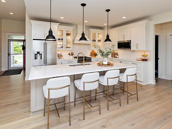 Luxury touches. Everyday livability. Move-in ready. Transformed with high-end updates, this home feels like brand-new construction—only better. Every detail has been elevated, from the redesigned kitchen to the custom finishes throughout. This stunning ranch home blends style, comfort, and function at every turn. The heart of the home is the kitchen—redesigned with taller, soft-close cabinets, sleek quartz counters, a massive 9-foot island, gold fixtures, and a side serving area complete with cabinetry and dual refrigerator drawers. It’s a space that feels far beyond builder grade, designed for both everyday living and entertaining. Just steps away, the main floor living room focal point is the stone fireplace that creates a warm and inviting space. Throughout the home (including the basement), new flooring adds a fresh feel, while oversized windows (with custom remote-controlled blinds) flood the rooms with natural light. The dining area opens to a 25’ x 20’ deck—partially covered and equipped with electricity for a TV, plus a dedicated gas line for your grill. The backyard is fully fenced, with no rear neighbors, creating a private oasis. The primary suite offers a double vanity, tiled shower, and walk-in closet. Two additional bedrooms share a full bath, with one bedroom accented with charming wainscoting detail. The finished lower level adds even more space with a wet bar, two more bedrooms, a full bathroom featuring a tiled tub surround.