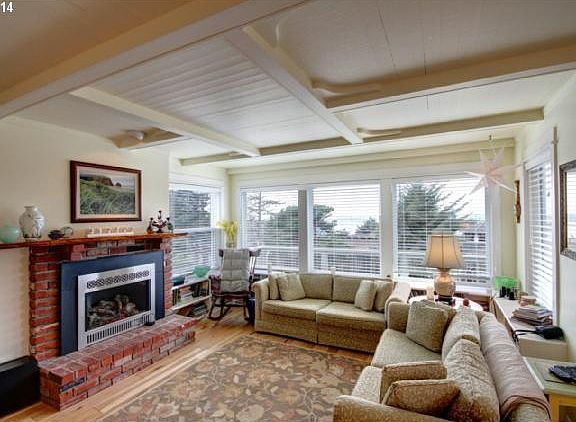 What a View & What spectacular new Touches. A spacious open split level entry welcomes you to this freshly remodeled ocean view home that also is licensed as a Bed & Breakfast. This terrific home features new natural hickory floors, fresh paint, a spacious living area, {3} gas fireplaces, beautiful ocean views, gourmet kitchen, expansive ocean side deck and much more. Just {1] block from the beach. * Make your beach dreams come true.