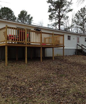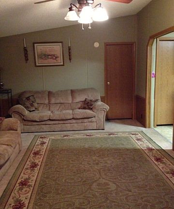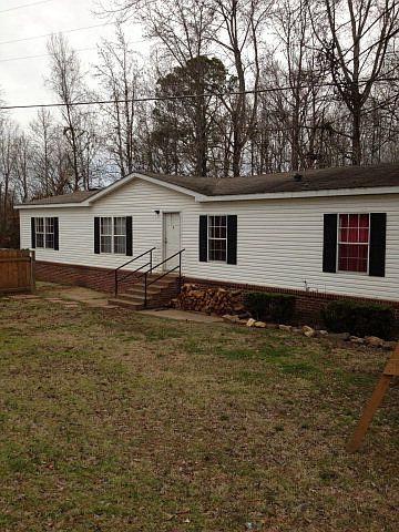 This doublewide mobile home has large family room, open kitchen and dining room, separate den with wood burning fireplace, master bedroom suite offers large bath with double vanity & large garden tub. Nice new deck on the back overlooks private fenced yard. New treatment plant Make an appointment to see this charming property for yourself.