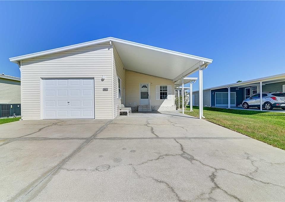 Looking for a pet friendly Florida neighborhood? Come enjoy the sunshine! Exceptional home in Betmar Acres 55+ community where you own your land! Located in the desirable pet section area where you can fence your yard with a low HOA fee of $310.00 per year. This 2004 3br/2ba/garage/carport is manufactured by Jacobsen with large den/office, separate Florida room with electric fire place, and exceptional bright kitchen. Ceiling fans and sky lights add exceptional atmosphere to this newer home. Beautiful design showcases many upgrades and a desirable OPEN FLOOR PLAN that flows perfectly throughout. This magnificent home's kitchen features: Newer appliances, double sink, eating space in kitchen, storage, and many counters that any home chef would enjoy. The home also offers laminate flooring, open concept for entertaining, inside laundry, one car garage with remote control door opener, additional storage shelving, double driveway, and fruit tree in back yard. The master retreat offers large bathroom with step in shower, double vanity, tub, and walk in closet. The other two bedrooms are bright and offer ample space. Don't forget it's near the 27 holes of golf, 2 swimming pools and hot tubs along with 3 clubhouses a library, walking paths, Game rooms (Billiards, Table Tennis, Board Games) miniature golf, enclosed shuffleboard Courts, Tennis courts, pickle ball courts, basketball court, Bocce courts and Bingo and our NEW dog park. * Additional fees may apply* Call for an appointment today.