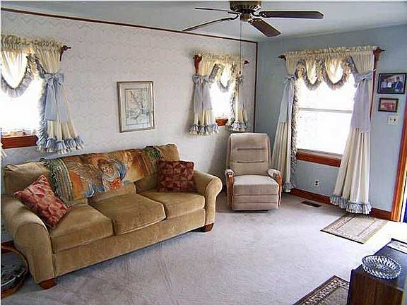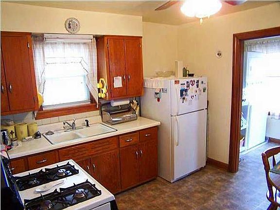 Enjoy this charming ranch nestled in a quiet and convenient neighborhood. This 2 Bedroom, 1 Full Bath all brick home that has been well maintained, is in move-in condition. The home is clean, has new flooring (original hardwoods are still there underneath current flooring), is excellent for 1st time home buyers and has neutral colors throughout. For energy efficiency, replacement windows were installed and the entire outside of the home is maintenance-free as it is either brick or has been trimmed with aluminum (no exterior painting on this home!!). The home has a cozy and comfortable front porch the front lawn. There is a concrete sidewalk from the front of the home, around the side and to the back door. There is street parking in front of the home or there is an alley way along the back of the home allowing for "off-street" parking. The back yard is spacious, has a utility shed and has plenty of room to add a 2 Car Garage if desired. When you walk in the front door, you will immediately notice the large Formal Living Room with lots of usable living space. The Formal Living Room has 3 windows as well as the front security door that allows plenty of natural lighting. There are two arched doorways within the home that added a unique flavor to the interior. The Eat In Kitchen is large, with new flooring, ceiling fan/light combo, original wood cabinets, two windows, tiled backsplash, and for the new home owner, the gas stove, fridge and microwave remain. Just off of the Eat In Kitchen, is the washer/dryer area. As well, there are two large Bedrooms with 2 windows in each (both bedrooms need new carpeting). Just off of both Bedrooms is a Full Bath with new flooring, shower/tub unit, linen closet, tiled walls and a medicine cabinet. For your piece of mind, the Seller is providing a One Year Home Warranty. All of this and more, make this home a must see!!