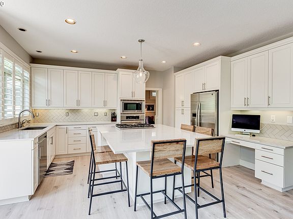 This beautiful home has an ideal floor plan, an open kitchen and family room, bedrooms upstairs with spacious primary ensuite. Full basement, bonus room, bedrooms, and storage. Stunning updates remolded kitchen with quartz counters, large island, stainless steel appliances, and new wood floors. Decks off the main floor and lower level lead to a beautifully private yard that backs up to green space. The neighborhood is quiet on a dead-end street, yet so close to shopping, schools and great parks.