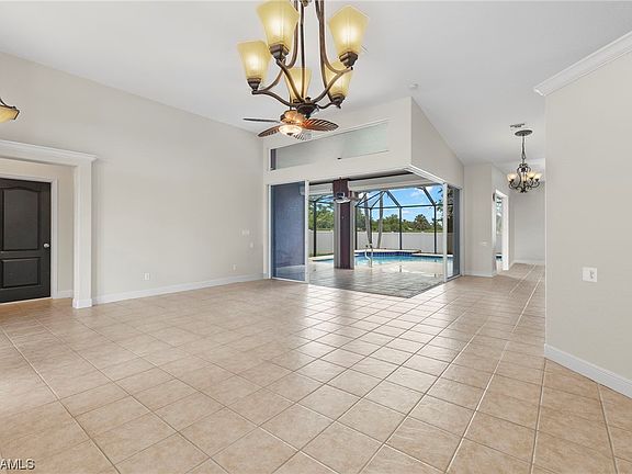 This move in ready 4 bedroom and 3.5 bathroom pool home in the lovely Country Club area of Cape Coral is a must see! Once you walk through the front double glass doors, you look right out the zero corner doors to the outdoor living area. The volume ceilings and abundance of windows make this home so light and bright! Formal living room and dining room that flows into the kitchen area and breakfast nook. The kitchen offers granite countertops, SS appliances and desk area. Spacious family room. One bedroom is an ensuite with a full bathroom that is wheelchair accessible. Owner's suite has french doors that walk out to the pool area, large bathroom and walk in closets. Tile throughout - no carpet! Interior was just painted. Capture some of the most beautiful sunsets by the heated saltwater pool with western exposure this home offers. Pool was recently resurfaced. Brand new pool cage. Separate pool bathroom. Roll down hurricane shutters. Fenced in yard. Quiet neighborhood backing up to the old golf course. Only minutes to downtown Cape Coral, Midpoint bridge and Cape Coral bridge. Close to shopping, restaurants and much more!