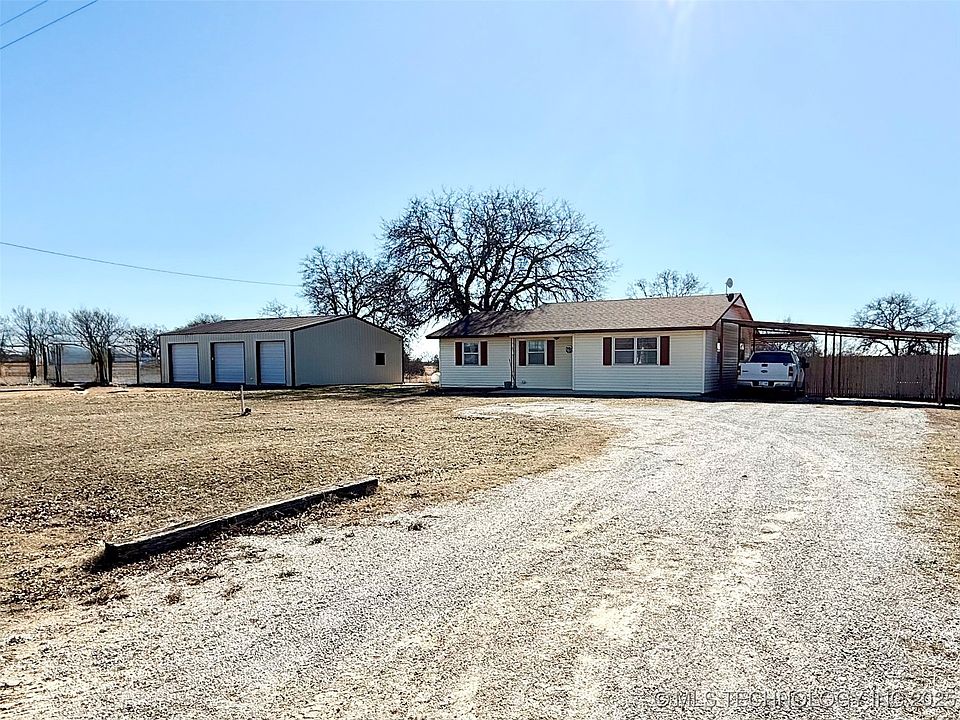 Situated on 1 acre of land, this charming three-bedroom, one-bath country residence boasts a spacious 42x30.5 two-car insulated garage, 3-ton heating and air. , which can be converted into a three-car garage and is currently used as a shop. The property features a secure fenced backyard with a storm cellar, perfect for outdoor enthusiasts, with space for a garden and swimming pool, and an outdoor fire pit ideal for gatherings. Paved roads for easy accessibility. Close to Wewoka, Cromwell, and Seminole.
