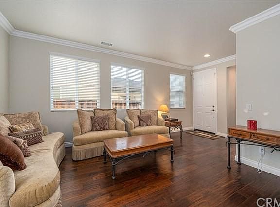 WOW! A 4 Bedroom Single Story Home is finally available in the Gated Community of Tournament Hills. This highly sough after neighborhood in Beaumont is just minutes from the I-10 and 60 freeways, close to schools, shopping, and more. This home has almost everything you could ask for. Crown Molding from top to bottom in through the entire house. New updated kitchen with Granite Counters, a Gorgeous Glass Tile Back Splash, Engineered Hard Wood Flooring throughout the home (including the master walk-in closet) and modern lighting fixtures. The front view has gorgeous curb appeal complete and the backyard is family gathering ready with a covered patio, both concrete and grass areas and a shed for storage. The association benefits include a beautiful 2.5 acre man-made lake with waterfalls that offers fishing, BBQs, playground equipment, areas for sports and beautiful walking paths.