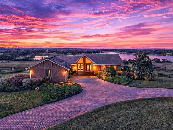 Welcome to an extraordinary hilltop estate in Dade City on nearly 33 acres of fenced, private land with sweeping views of Lake Pasadena and an impeccably detailed primary residence. The property encompasses fenced pasture and rolling land providing endless possibilities for agricultural enthusiasts to have horses, chickens, cows, sheep, goats and other farm animals, or who want to indulge in gardening, farming, boating, fishing or large-scale entertaining. The lake views and hilltop privacy create a serene timeless setting. The brick-clad home crowns the property, offering elevated panoramas and a striking curb presence. Enter the home on the main level the primary suite is a serene retreat with crown molding, a spa-like bathroom featuring a garden tub and separate walk-in shower, while a second bedroom currently used as an office and an adjacent guest bath complete the main level. The newly remodeled kitchen offers rich wood cabinetry trimmed in crown molding, beautiful granite countertops, a large island with cooktop, pull-out cabinets and drawers, and stainless KitchenAid appliances, plus a separate wine/beverage dry bar ideal for entertaining. The upstairs family room is warmed by a wood-burning fireplace, exposed wood beams, and expansive windows framing the property and lake beyond. The lower level expands living and entertaining options with a large great room anchored by a second brick fireplace, a huge bonus room, guest bath, and sliders that open directly to the grounds. Two generous downstairs bedrooms include a secondary owners’ retreat or mother-in-law suite with a private, spa-like bath and Jack-and-Jill configuration, bringing the primary house to four true bedrooms and four full bathrooms. Down the hill near the lake is a second home with 2 bedrooms perfect for extended family, guests, staff, or rental income. Dade city is a quaint town with a historic downtown featuring Old-Florida charm. The home is a few minutes off I-75 which has easy access to Wesley Chapel's shopping, restaurants, bars, Hospitals etc. Call today to view this spectacular property!