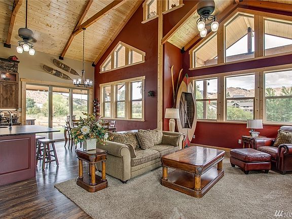 Sumptuous indoor & outdoor living on the Wenatchee River. Open concept w/ tongue & groove cathedral ceilings for that country feel. Kitchen offers gorgeous granite counters w/ large island & prep sink. Use the loft for multiple purposes - plumbed for second kitchen. Master bed/bath w/ sliding glass door to private deck, quartz counters & tiled walk-in shower. Exceptional entertaining space outside w/ built in bbq & fridge. Relax & take in the views w/ a quick stroll to the river to dip your toes