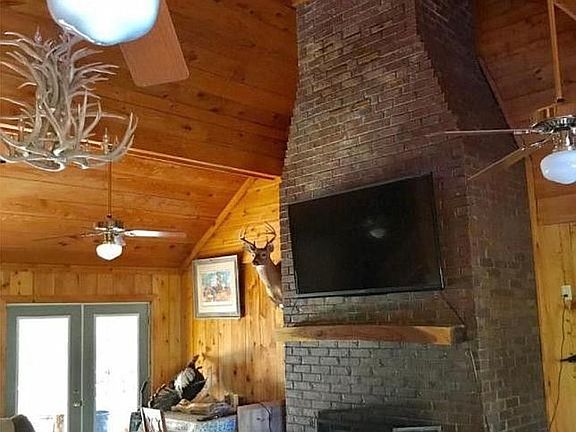 Cozy Cabin on the Bluff… Up for sale is a 3-4 bedroom, 1 full bath (could easily add another) on 1 acre of land, about ten minutes outside of Batesville…can be a weekend getaway or full time home… Sitting on the huge covered back porch will make you feel like you are miles away from the hectic city as the deer and turkey roam your yard… the cabin has central heating and air, and also has two fully functional fireplaces with more than a cord of wood that is ready to go! The sunroom could be used as an additional bedroom, with its own fireplace and wet bar for your pleasure. Pine floors are mostly throughout and inside the main living room are ceiling fans and an antler chandelier to suit the avid outdoorsmen.