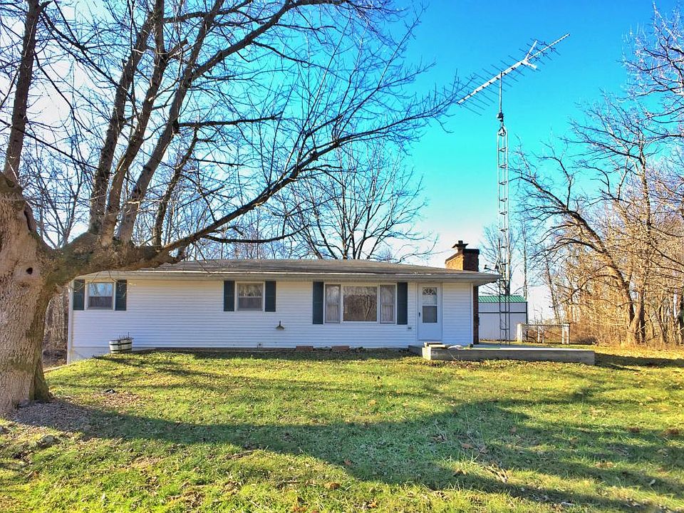 IN THE COUNTRY BUT CLOSE TO TOWN ! 1100 SQFT HOME WITH FULL WALK-OUT BASEMENT, 1 car attached garage, nice workshop area with several electrical outlets, newer efficient gas furnace, central air, 10' x 16' newer outbuilding, Nice Hardwood flooring, Brick Fireplace in Living room,