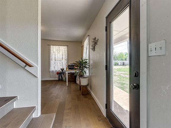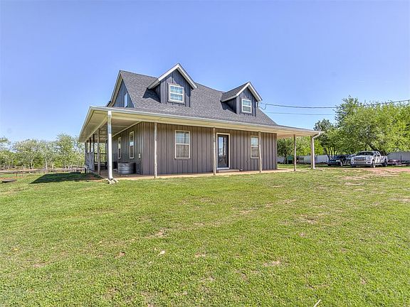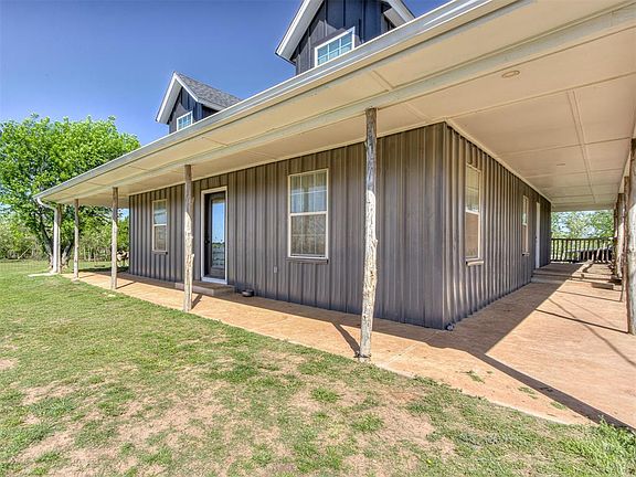 And let's not forget about the outdoor spaces! A full concrete wraparound surrounds the house, offering durability and easy maintenance. Plus, a balcony adorned with rustic tree posts provides the perfect spot to sip your morning coffee or enjoy the Oklahoma sunset.
