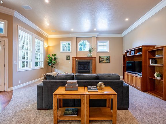 Comfortable Living in North Gilham! This stunning home is located in the premier River Pointe neighborhood of Eugene. The spacious kitchen showcases a large granite island, abundant cabinetry, extensive built-ins, a gas cooktop, and stainless steel appliances. Providing both open layout, and separation of space with a spacious office, formal dining room, and a great room/living room with a cozy gas fireplace. Consideration toward comfortable living is seen in the perfect layout that offers three bedrooms all with their own adjacent ensuite bathrooms. Highlighted by gorgeous hardwood flooring, crown moldings, custom tilework, and craftsman details, this beautiful home feels like a sanctuary. The owner suite features a surprisingly large walk-in closet, dual sinks, a water closet, a soaking tub, and a tiled walk-in shower with bench. Outside the private yard offers mature landscaping for a tranquil retreat.
